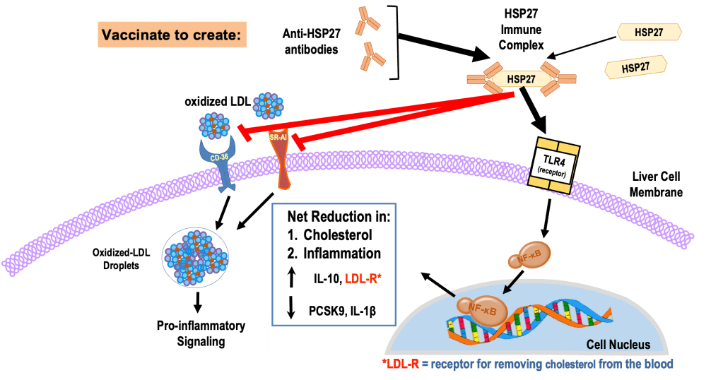 While studying how estrogen affects blood vessels, we found that Heat Shock Protein 27 (HSP27) plays a crucial role in preventing atherosclerosis. Our research indicated that natural antibodies to HSP27 enhance its effectiveness in managing inflammation and cholesterol in the liver.